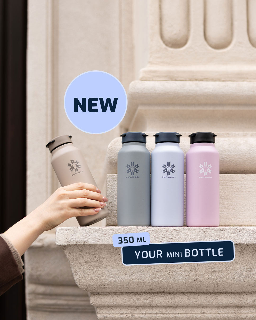 The Mini Jet is our smallest 350 ml bottle. Perfect for walks, city errands, and travel. It easily fits into a handbag, backpack, or even a pocket. Despite its mini size, it keeps drinks hot for up to 12 hours or cold for up to 24 hours.