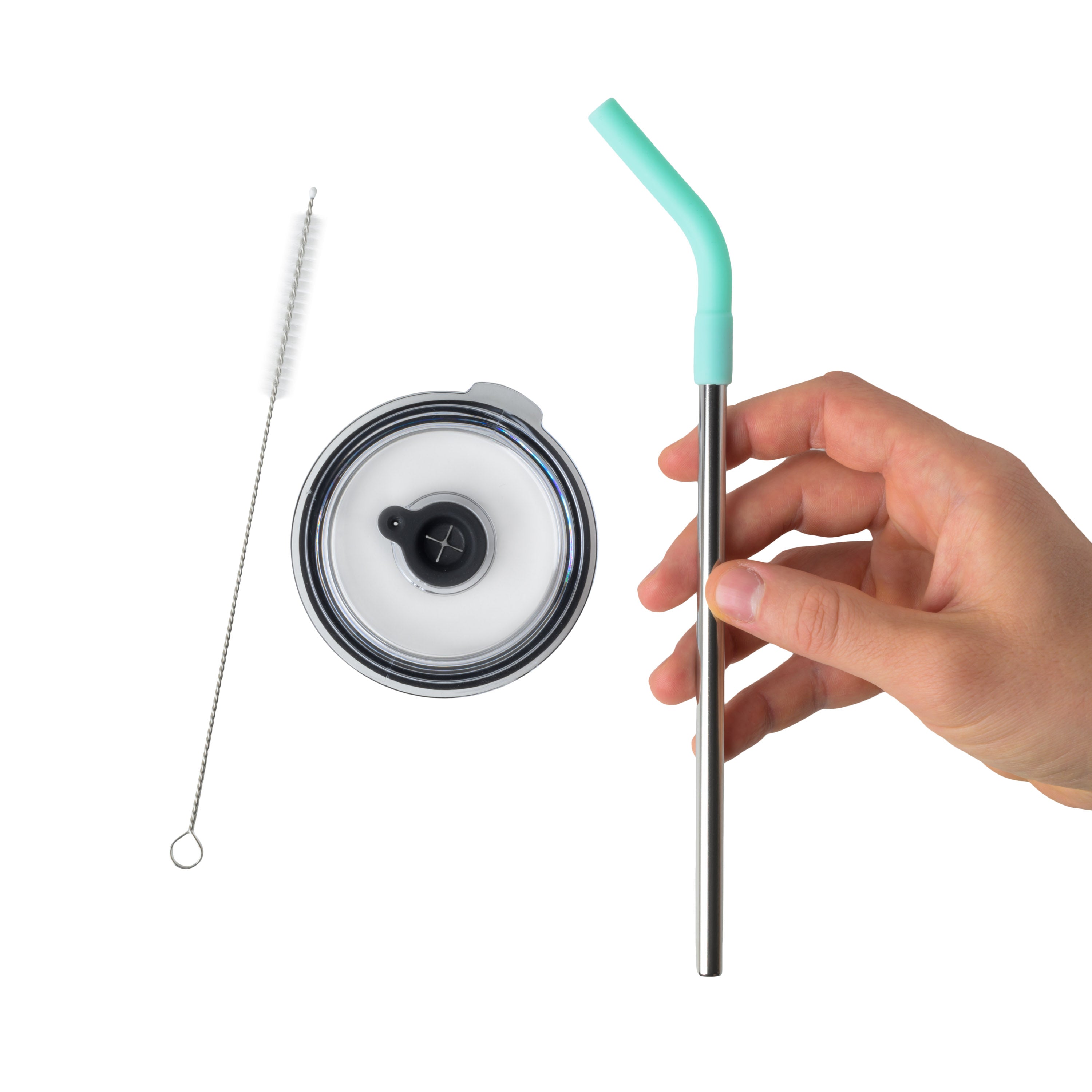 The set includes everything you need for sustainable and carefree use: 1x stainless steel straw, 1x BPA-free colored silicone tip, and 1x cleaning brush.