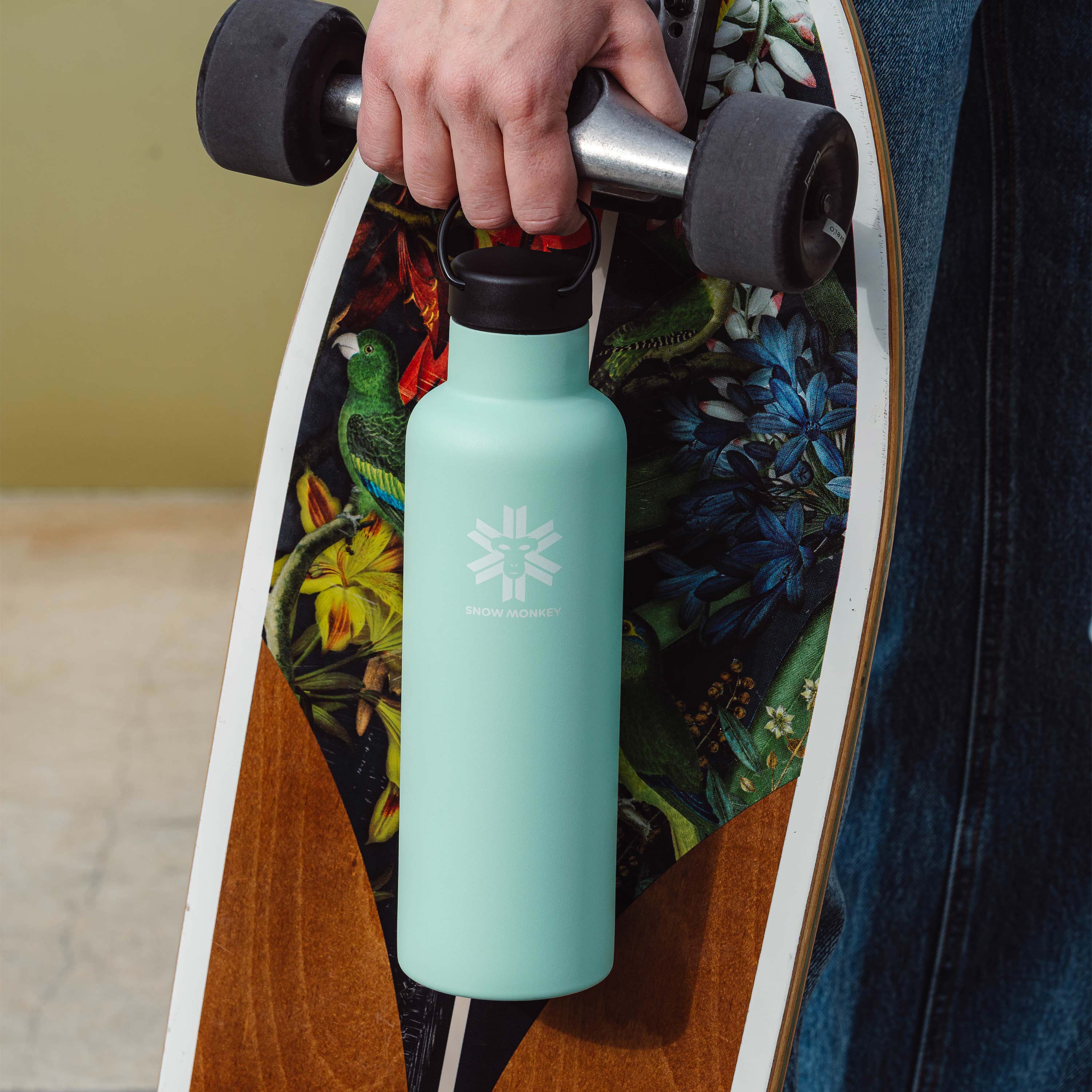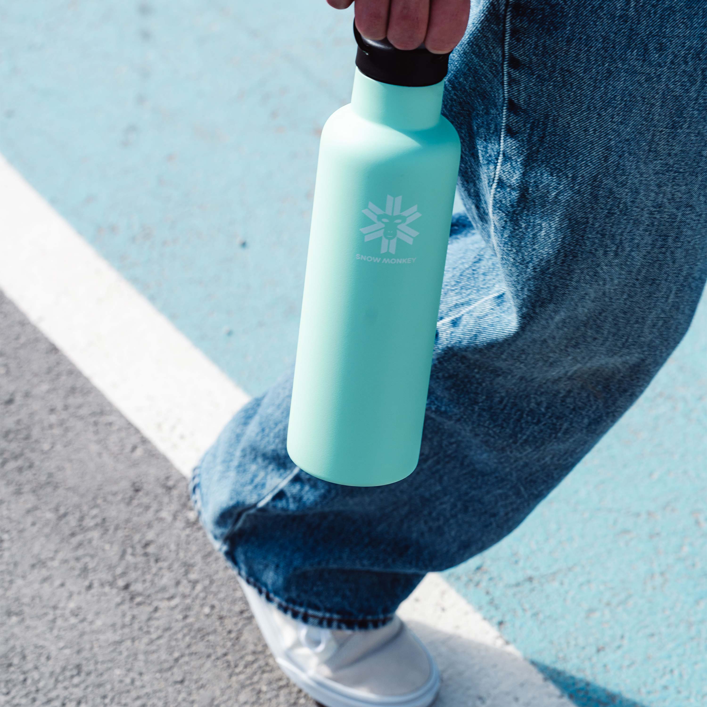 The Snow Monkey Mover bottle provides hours of hydration, while the leak-proof lid with a convenient handle ensures that it reliably accompanies you through your daily routine. Perfect for work, trips, city life, or nature.