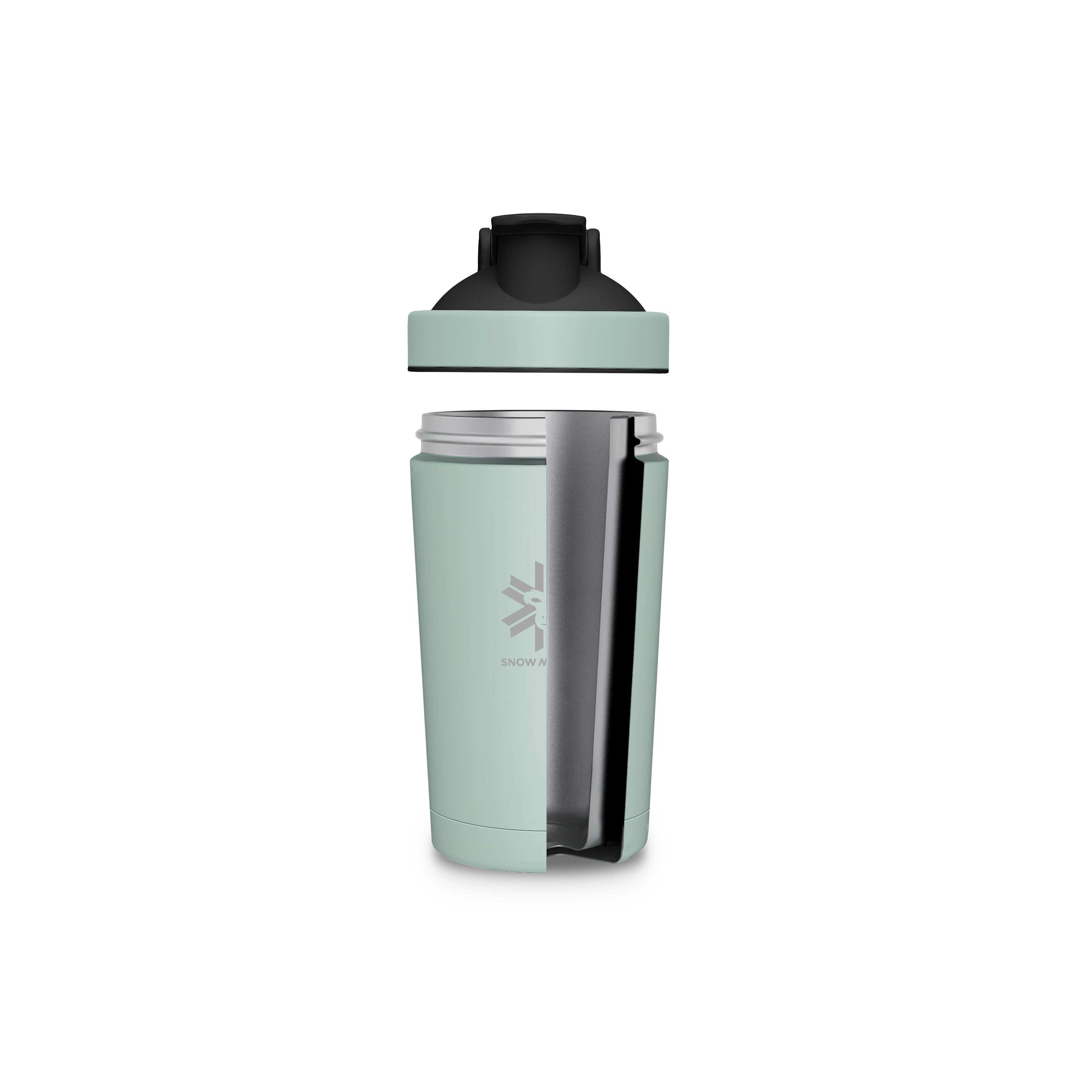 Shaker omogoča enostavno mešanje pijač brez grudic – opremljen je z navojnim pokrovčkom z obračalnim zapiranjem, širokim ustjem, kroglico za mešanje iz nerjavečega jekla ter praktičnimi merilnimi črtami.